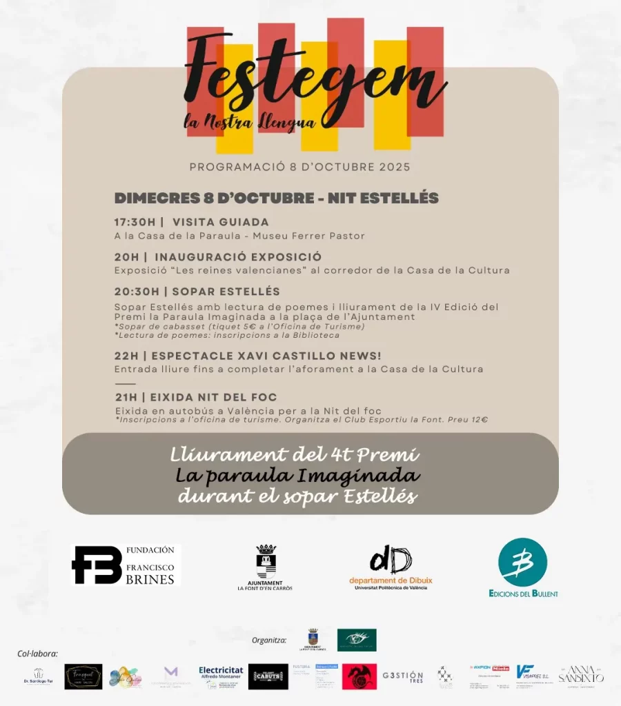 Cena Estellés con lectura de poemas y entrega de la IV Edición del Premio «la Paraula Imaginada» en la plaza del Ayuntamento