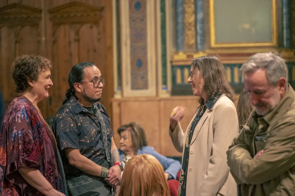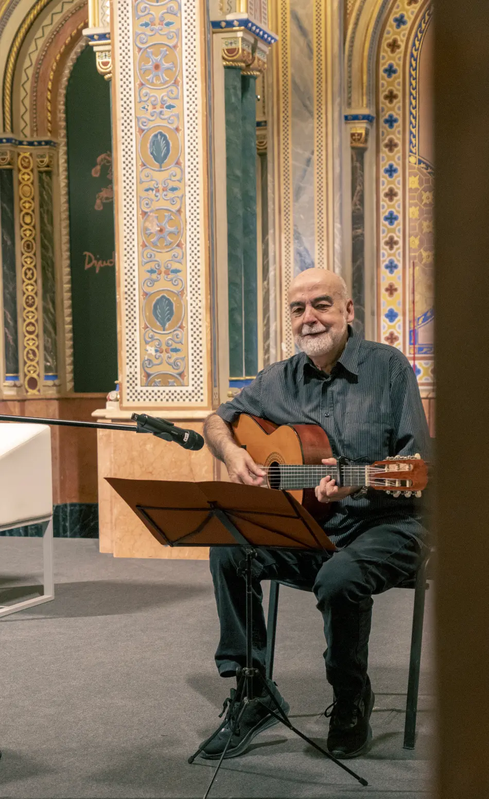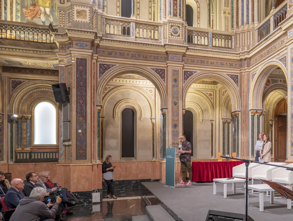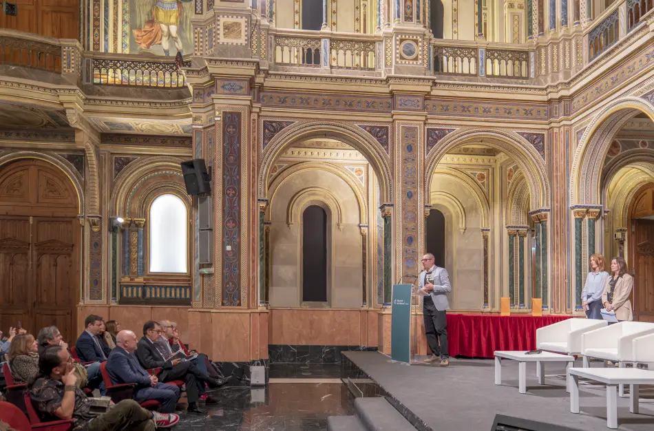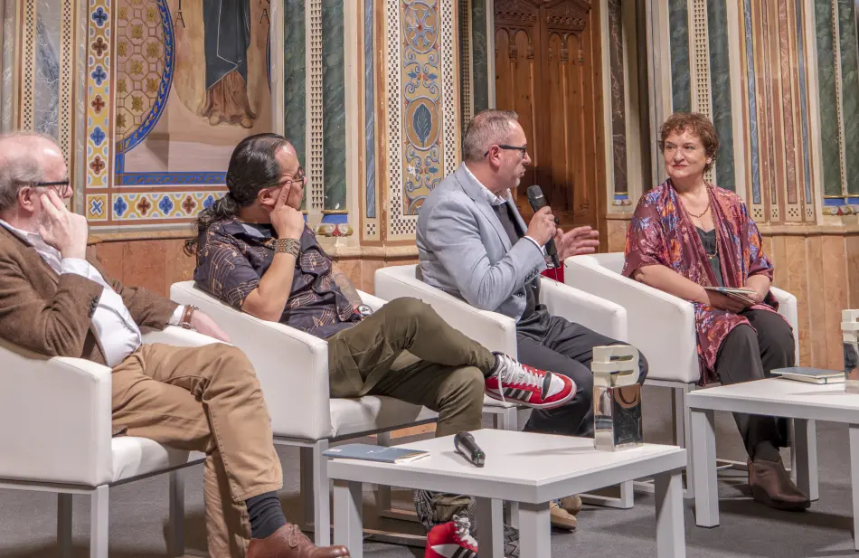 Després del lliurament dels guardons disseny de Joan Millet, també patró de la Fundació, es va donar pas a l’emocionant actuació d’Emiliano Valdeolivas musicant poemes de Francisco Brines i després a la presentació i el col·loqui amb els guanyadors. Manuel Borrás va entrevistar el guanyador en castellà i Rosa Mascarell Dauder al guanyador en valencià. Així com Borrás va destacar el viatge a la proto-història humana del poemari d’Henry Alexander Gómez, Rosa Mascarell va destacar el viatge a la prehistòria del poeta Victor Filgueira, qui, després del seu viatge a Troia- Barcelona, torna a la seua Ítaca ja coberta per cendres, en els records de les quals prefereix no furgar per a no arribar als ossos. “El semàfor roig” li impel·leix a parar i dialogar amb el seu un altre jo o més aviat amb l’àngel de la poesia que, com deia Brines, se’ns presenta sense paraules.